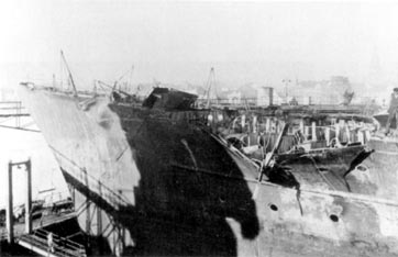 Ved operation Cerberus i 1942, brød Gneisenau sammen med slagskibene Scarnhorst og Prinz Eugen den engelske blokade i Den Engelske Kanal og forskød fra den franske havneby Brest til tyske havne. Ved denne operation bliver Gneisenau beskadiget af en mine. Under reparation på værftet i Kiel tømmer man mod sædvane ikke skibets magasiner for ammunition, og under et engelsk fly-angreb rammes det forreste tredobbelte 280 mm kanontårn. Hele forskibet blev ødelagt og 112 mennesker omkom.