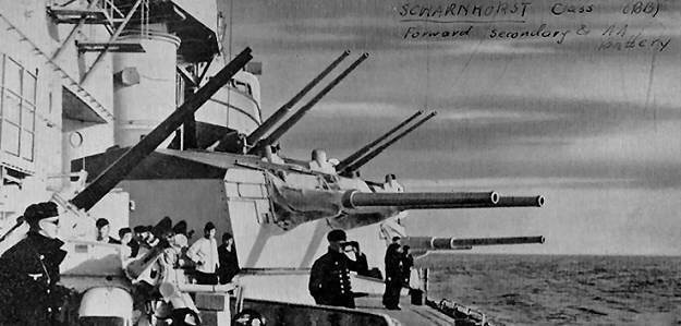 Gneisenau blev herefter sejlet til Gotenhaven (Gdynia) i Polen for reparation og nye bevæbning i form af 380 mm kanoner. Dette blev dog aldrig ført ud i livet. I 1943 udstedte Hitler en befaling (Führerbefehl) om at alle større enheder, fra lette krydsere og opefter, skulle oplægges. Han mente ikke de tjente deres formål. Efter dette blev artilleriet pillet ud af skibene og anvendt på Atlantvolden.