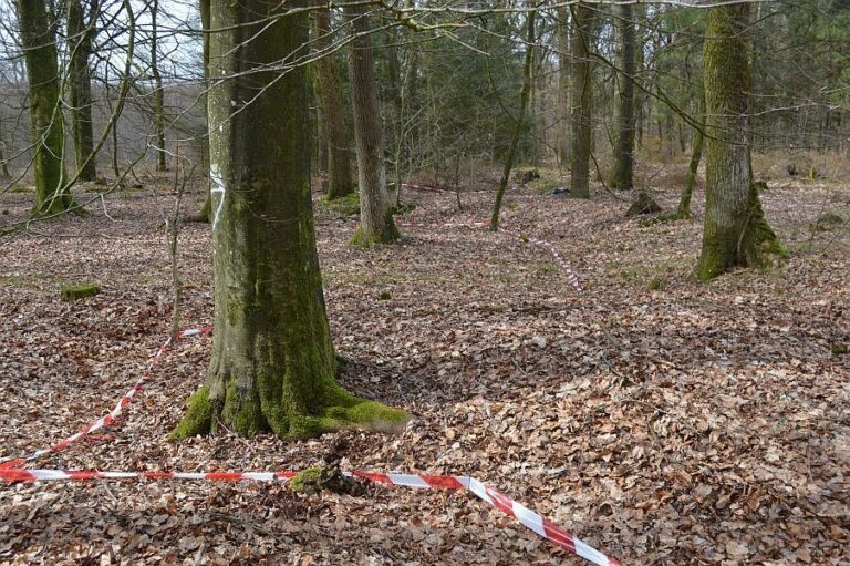 Allerup Krat, Allerupvej, Allerup. Sprængt batteri med mange rester Kort